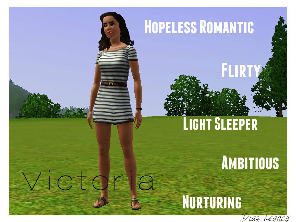 Meet Victoria Diaz, the founder of the Diaz legacy. She's just moved to 15 Summer Hill Court, Sunset Valley, with only 1800 Simoleans to her name! She's looking to make a name for herself in the Political Career, you could say it's her Lifetime Wish.